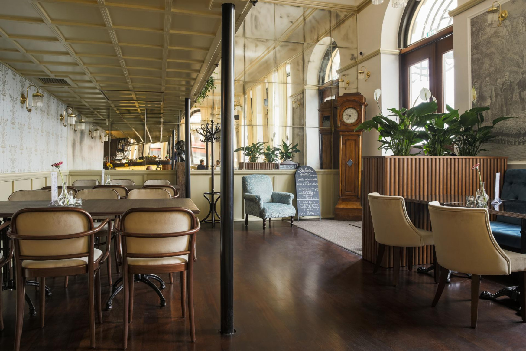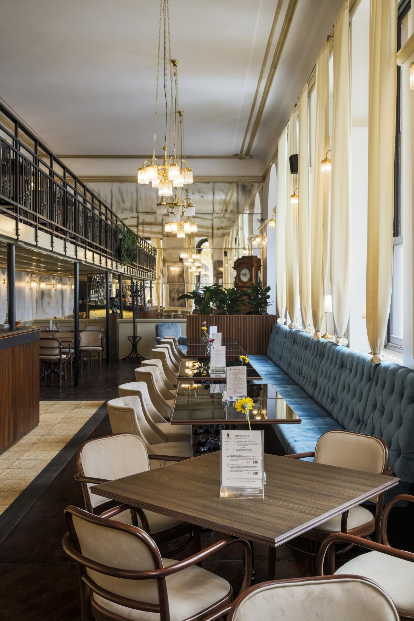 The renovation project of Štefánka Restaurant was carried out with a strong focus on preserving its historic character. We used a combination of oak veneer and solid wood furniture, enhanced with subtle staining. The solid wood moldings on the bar add an authentic touch to the space while maintaining the restaurant’s original atmosphere. At every step, we made sure to preserve its original charm and elegance, creating an environment that immerses you in history while providing modern comfort.